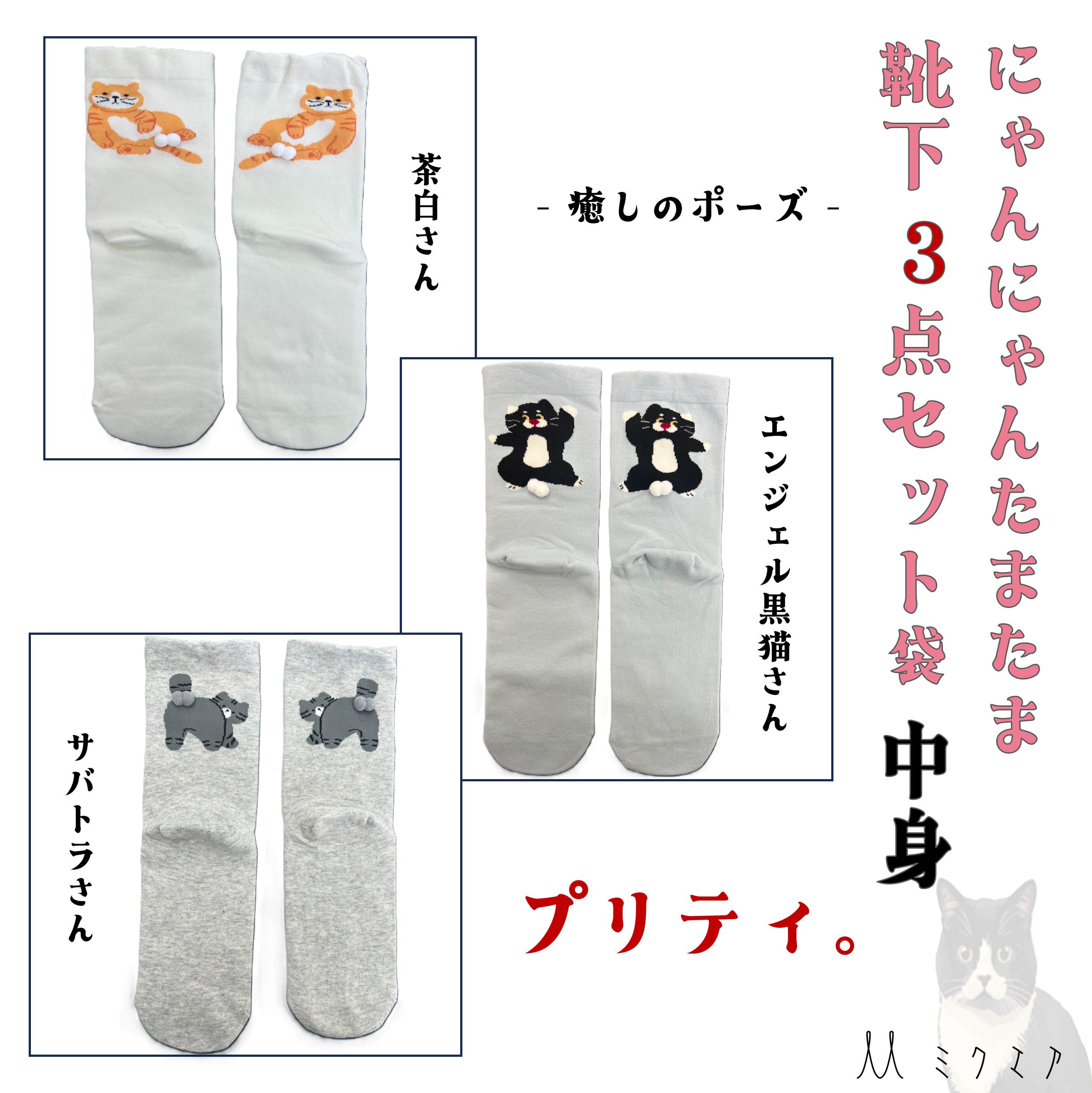 にゃんにゃんたまたま靴下3点セット